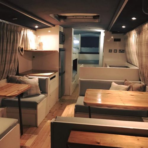 This Retro bus has a vintage chic main cabin with 2x Double Beds and 2x Single beds