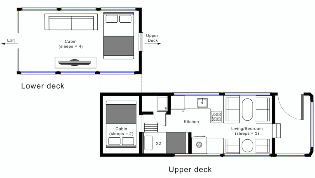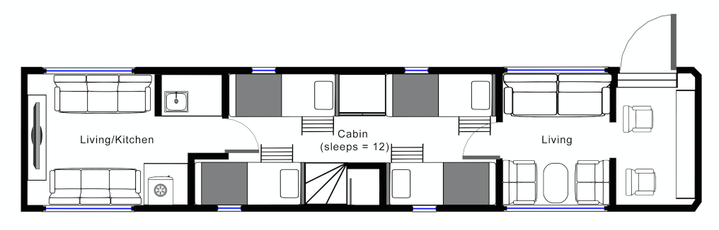 This Retro bus has a vintage chic main cabin with 2x Double Beds and 2x Single beds